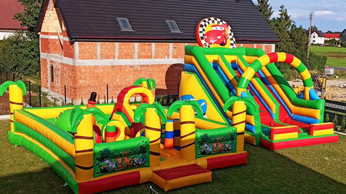 Lub nasza NOWOŚĆ na 2022 rok czyli Giga Zjeżdżalnia z dwoma ślizgami, której zdjęcia znajdą Państwo poniżej, o wymiarach:
